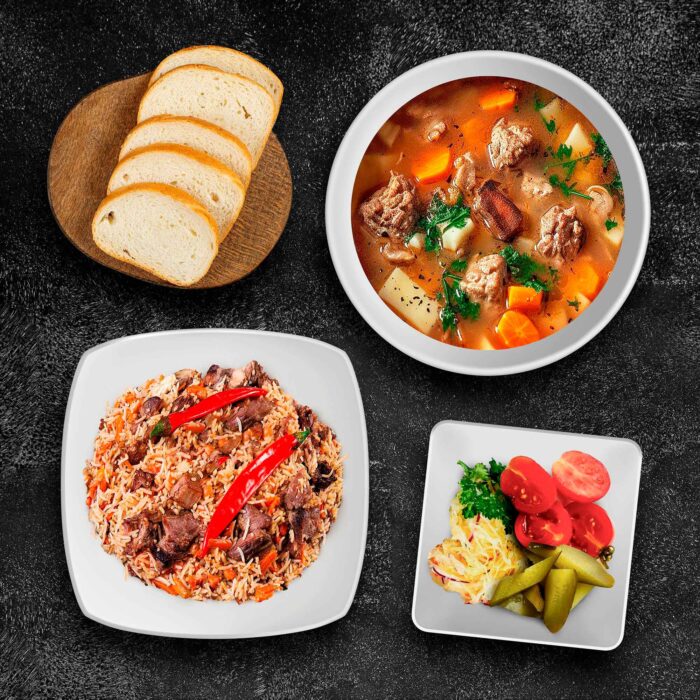 Start your meal with the comforting flavors of Buckwheat Soup with Meatballs. This nourishing soup features tender meatballs made from high-quality ingredients, swimming in a flavorful broth alongside wholesome buckwheat. Each spoonful is a delightful combination of textures and tastes that will warm your soul.